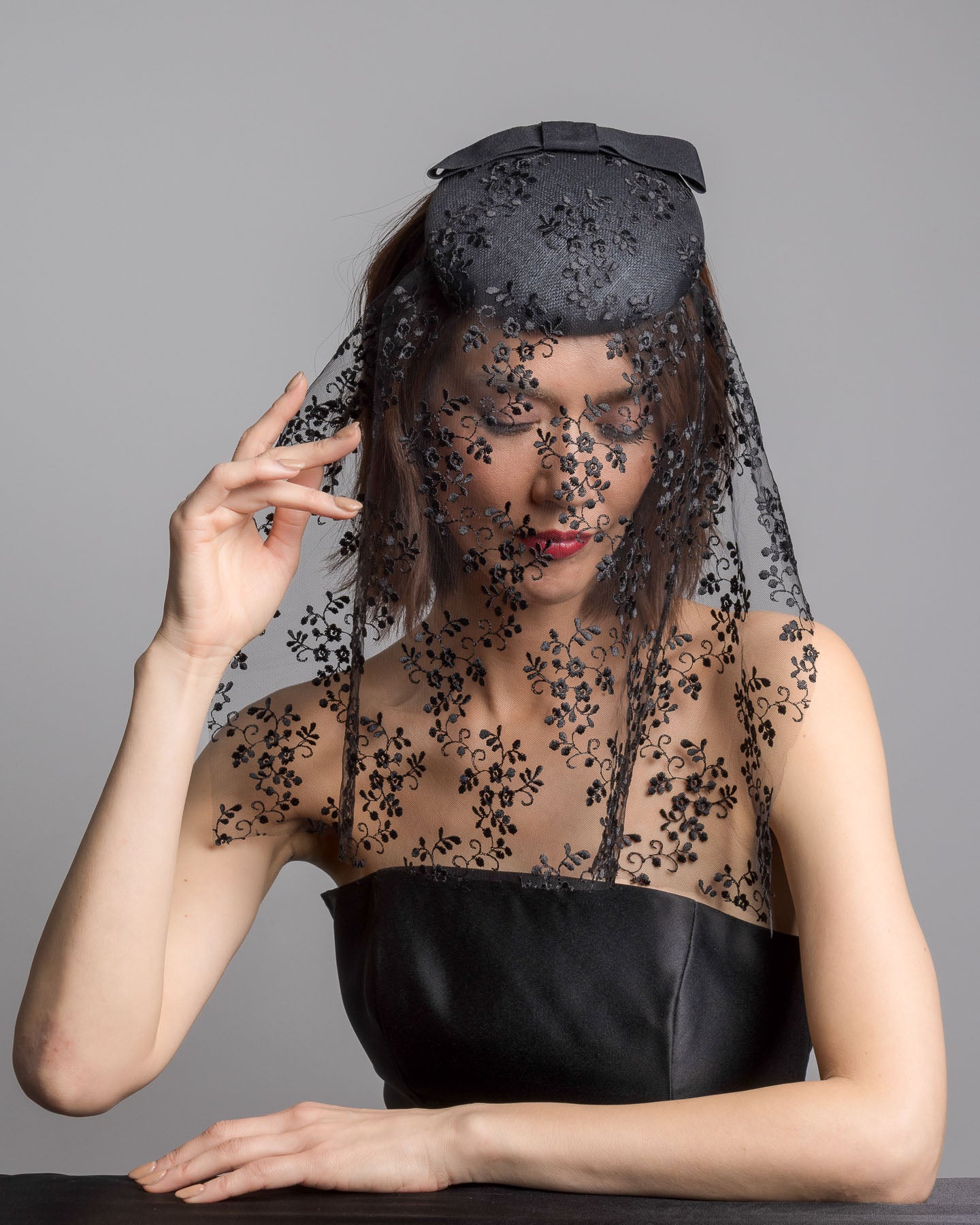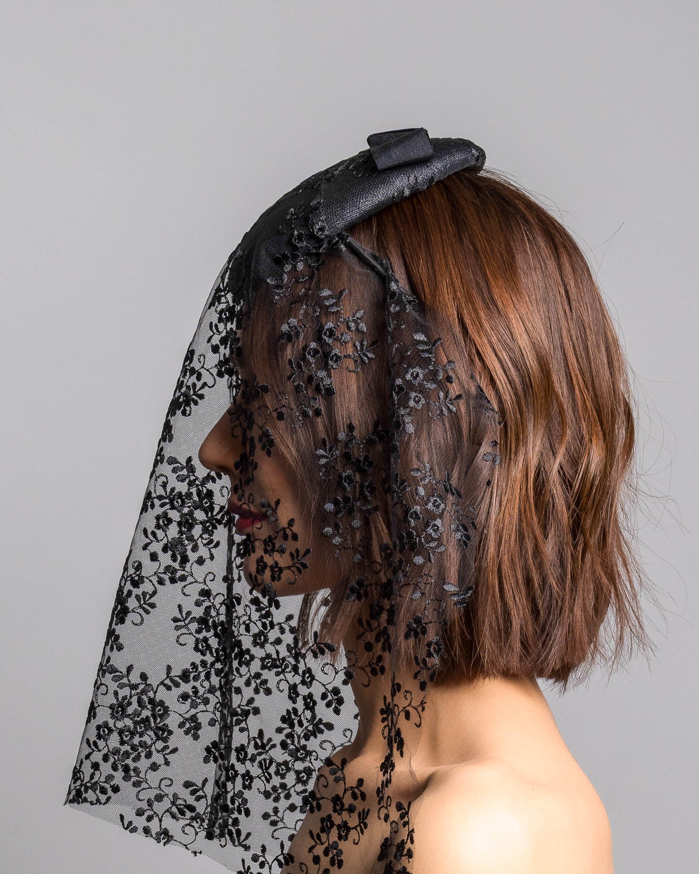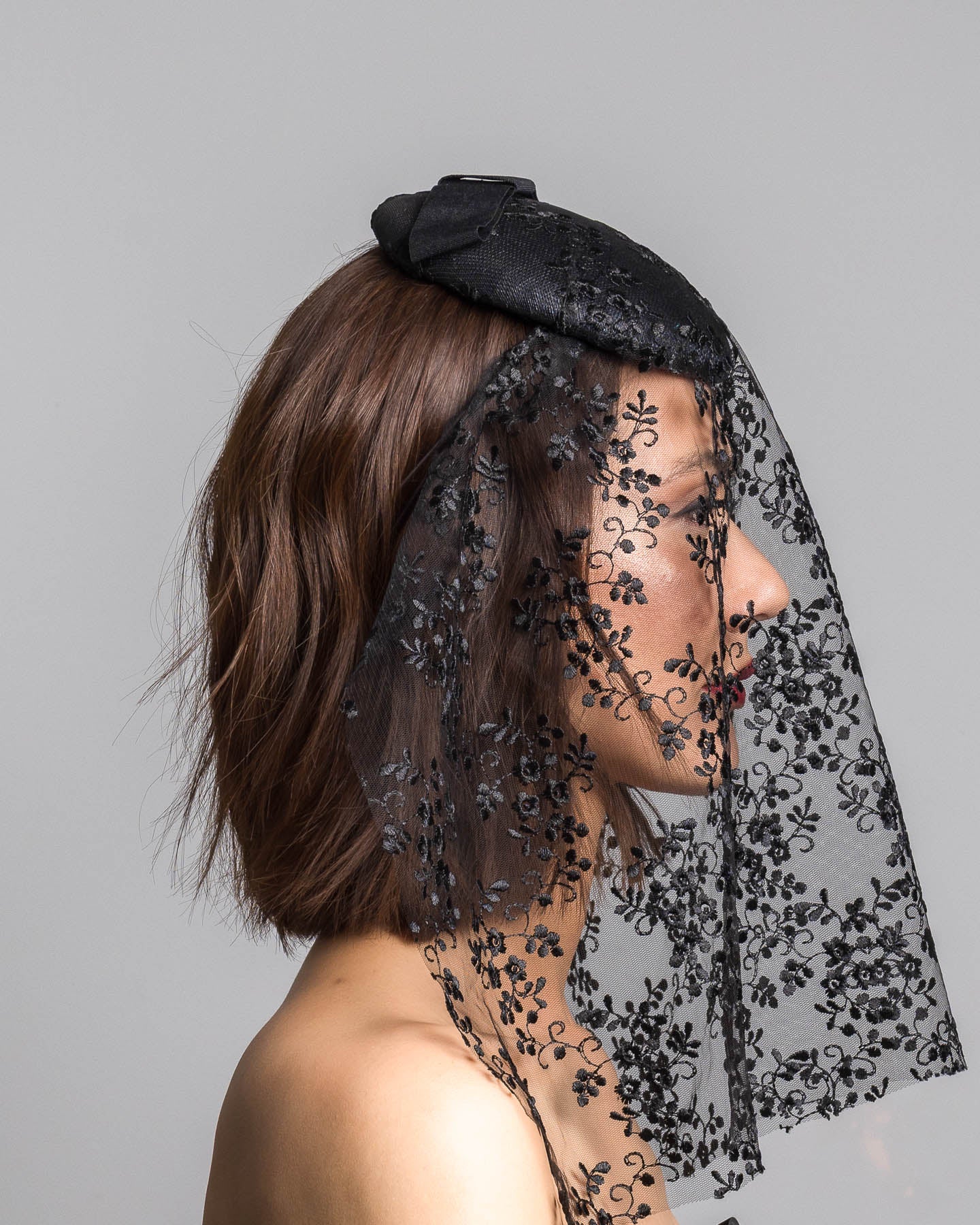 Style Tip: Pair with a simple black dress or tailored coat, keeping accessories minimal to allow the lace veil to remain the focal point.