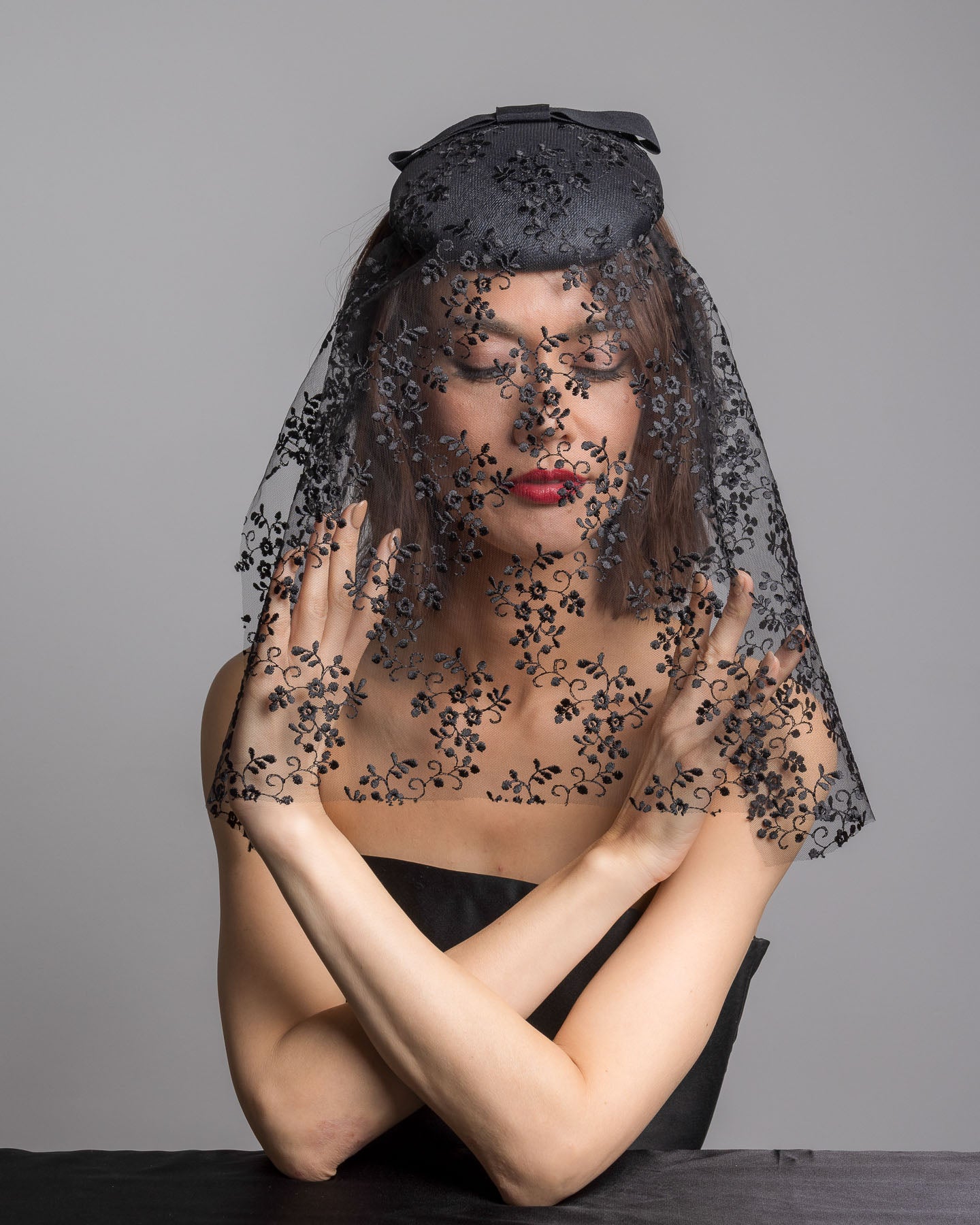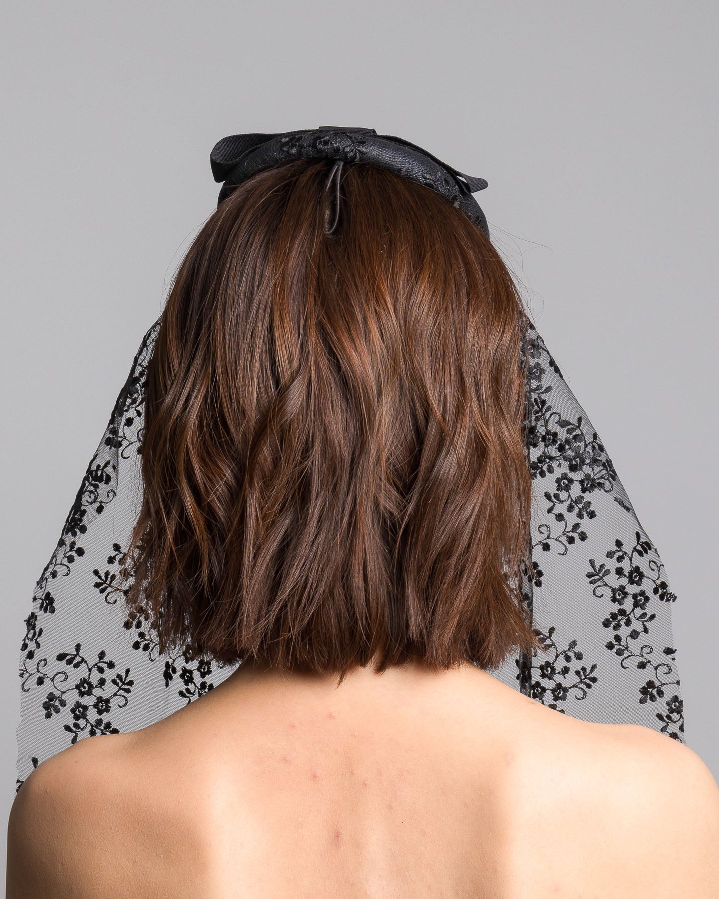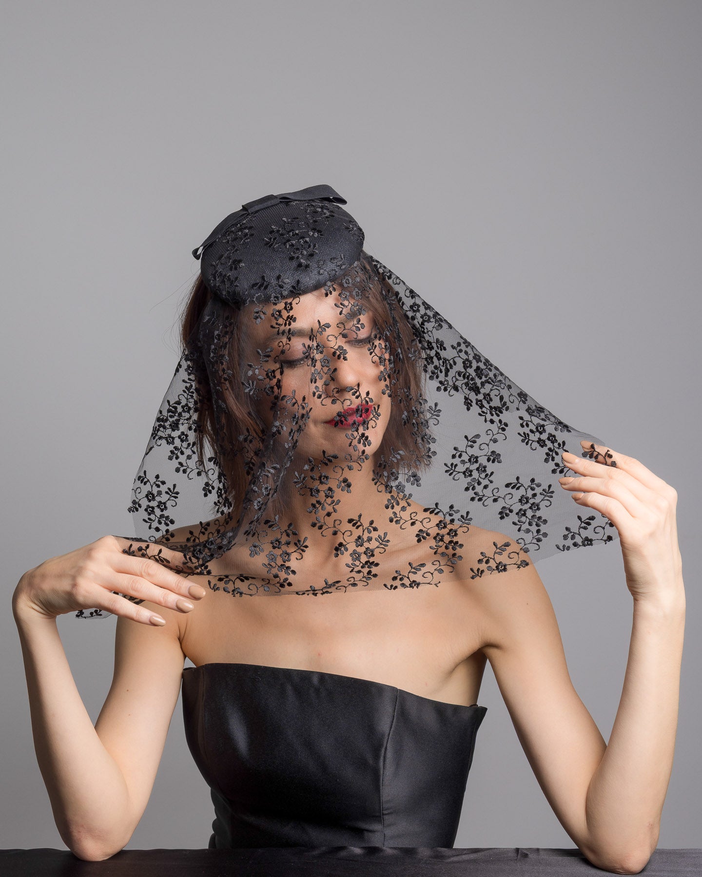 Style Tip: Pair with a simple black dress or tailored coat, keeping accessories minimal to allow the lace veil to remain the focal point.