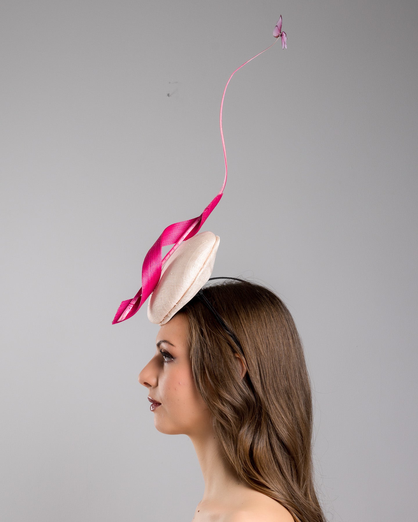 The pink fascinator style hat is suitable for Royal Ascot including Royal Enclosure & Kentucky Derby as well as high fashion events.